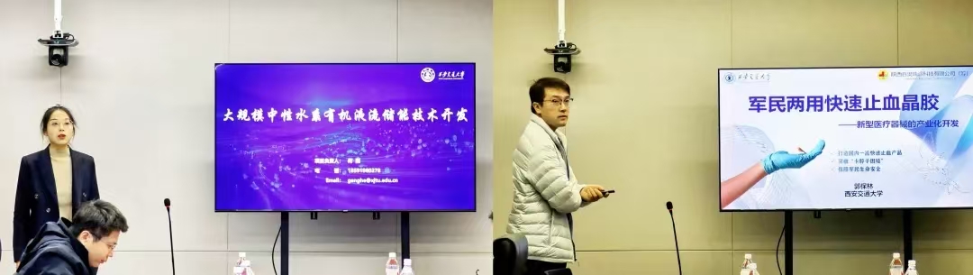 在令人矚目的項目路演環(huán)節,西安交通大學(xué)前沿科學(xué)技術(shù)研究院的5個(gè)優(yōu)質(zhì)項目依次登場(chǎng)?!叭嵝跃Ч韫夥鼘щ姖{料研發(fā)” 、“超柔超強超彈鈦鎳應變玻璃合金與器件研發(fā)” 、“光電薄膜在線(xiàn)光譜檢測監測設備” 、“大規模中性水系有機液流儲能技術(shù)開(kāi)發(fā)” 、“軍民兩用快速止血晶膠” 等相關(guān)項目,分別從研究背景、行業(yè)現狀、技術(shù)痛點(diǎn)、創(chuàng )新技術(shù)、產(chǎn)品架構、案例應用、研究團隊、商業(yè)規劃、社會(huì )價(jià)值、核心優(yōu)勢以及研發(fā)優(yōu)勢等諸多維度,全方位、深層次地解析了各自項目所屬行業(yè)的發(fā)展趨勢、研究的領(lǐng)先性以及科技成果產(chǎn)業(yè)化所需的融資額度,充分展示了項目的獨特魅力與巨大潛力。