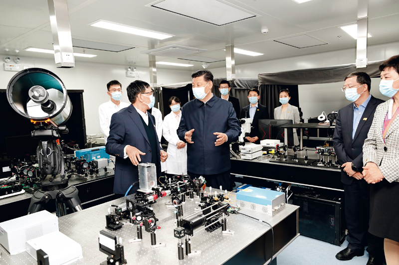 2021年4月19日,在清華大學(xué)建校110周年校慶日即將來(lái)臨之際,中共中央總書(shū)記、國家主席、中央軍委主席習近平來(lái)到清華大學(xué)考察。這是習近平在清華大學(xué)成像與智能技術(shù)實(shí)驗室同師生們親切交談。 新華社記者 黃敬文/攝