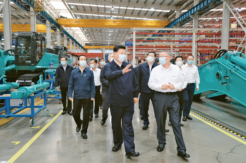 2020年9月16日至18日,中共中央總書(shū)記、國家主席、中央軍委主席習近平在湖南考察。這是17日下午,習近平在長(cháng)沙市山河智能裝備股份有限公司生產(chǎn)車(chē)間,察看裝備制造流程,了解技術(shù)研發(fā)、生產(chǎn)制造情況。 新華社記者 李學(xué)仁/攝