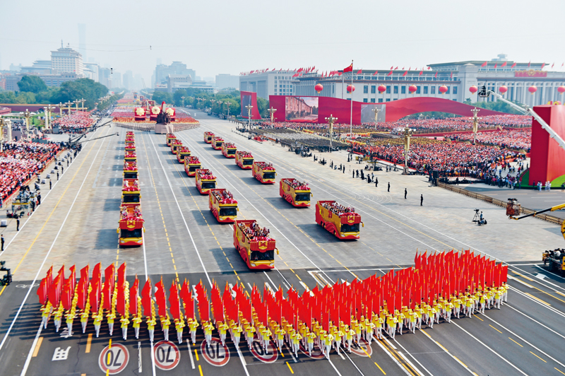 70年來(lái),在中國共產(chǎn)黨堅強領(lǐng)導下,中國人民勇于探索、不斷實(shí)踐,成功開(kāi)辟了中國特色社會(huì )主義道路,推動(dòng)中國特色社會(huì )主義進(jìn)入新時(shí)代,中國大踏步趕上了時(shí)代,中國人民意氣風(fēng)發(fā)走在了時(shí)代前列!
